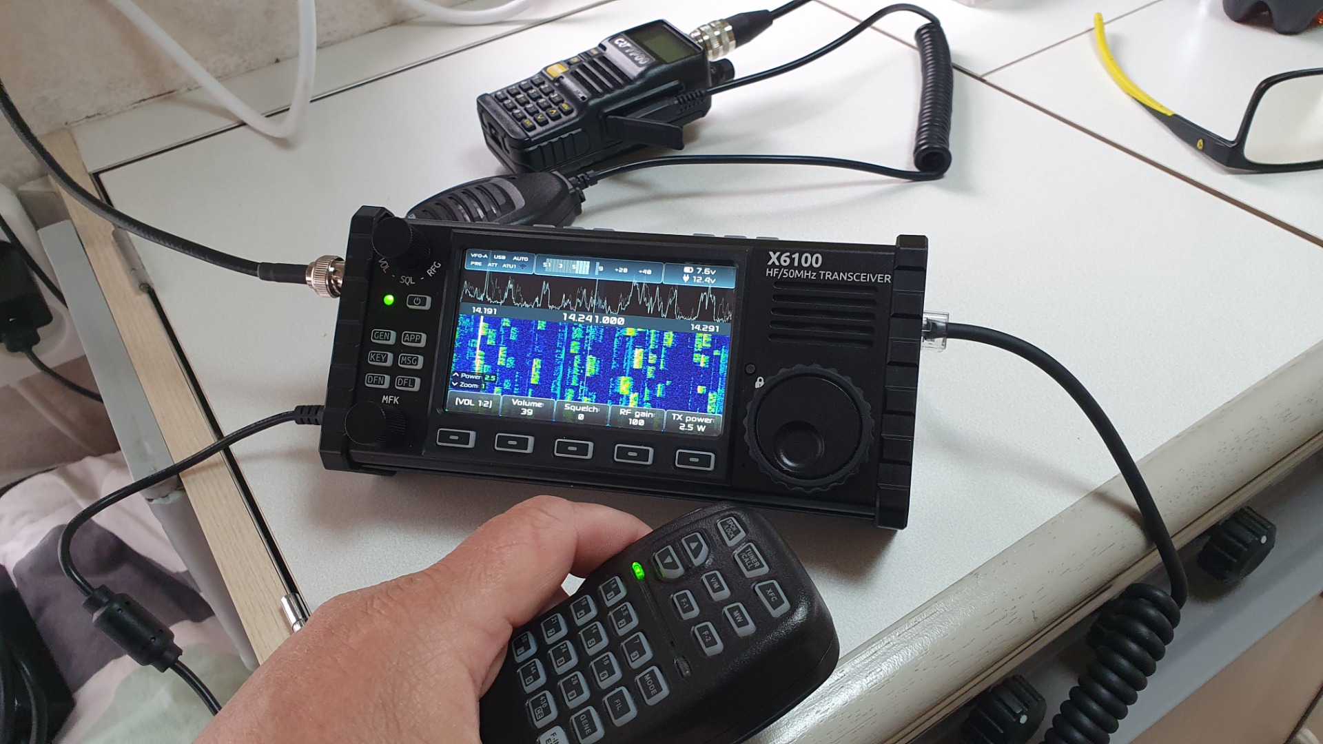 Using the Xiegu 6200 unit on it's battery pack, into a modified JPC12 groundplane antenna !